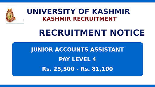 Kashmir University Junior Accounts Assistants Recruitment , Salary Rs. 25,500 to Rs. 81,100